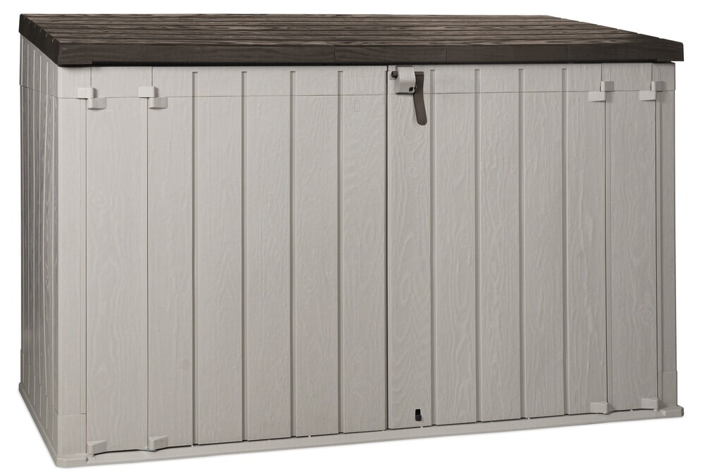 Dotaz na produkt Na splátky ještě dnesPředstavujeme Vám novinku v oblasti zahradních úložných řešení - extra velkou zahradní skříň STORA WAY PLUS 3XL. Tato skříň přináší inovativní design spojený s praktičností, usnadňující uskladnění všech vašich zahradních potřeb. SNADNÉ OTEVÍRÁNÍ A PŘÍSTUP Dvoukřídlé dveře a pohodlné otevírací víko, vybavené vzduchovými vzpěrami (písty) pro lehkou manipulaci, zajišťují snadný přístup do skříně. S příjemným šikmým práhem je uložení a výměna popelnic či jiných těžších předmětů mimořádně snadná. DOSTATEK PROSTORU Skříň STORA WAY PLUS 3XL je navržena tak, aby poskytovala dostatek prostoru pro uskladnění široké škály zahradního vybavení, jako jsou kola, sekačky, nářadí a zahradní nábytek. S objemem 2 770 litrů Vám skříň poskytne dostatek místa pro uskladnění Vašich cenných nástrojů a vybavení. EKOLOGIE A ODOLNOST VŮČI POČASÍ Vyrobená z odolného recyklovaného plastu, skříň STORA WAY PLUS 3XL odolává jakékoli nepřízni počasí, včetně silného slunečního záření, bez jakýchkoli známek poškození. Možnost uzamykání zajistí bezpečné uložení vašeho majetku a přinese vám klid na mysli. SNADNÁ MONTÁŽ A ÚDRŽBA Jednoduchá montáž za pomoci běžného nářadí a dvou osob umožňuje rychlé sestavení, zatímco údržba skříně je stejně snadná díky možnosti jednoduchého čištění vodou a mýdlem. ELEGANTNÍ PROVEDENÍ Skříň STORA WAY PLUS 3XL se může pochlubit elegantním designem s imitací dřevěného povrchu, který zaručuje, že se bude vkusně hodit do každého zahradního prostředí. Barevné provedení béžových stěn a hnědého víka zajišťuje, že skříň bude esteticky příjemným a praktickým přírůstkem pro Váš venkovní prostor. Užijte si bezstarostné ukládání a přístup ke svému zahradnímu vybavení s prostornou zahradní skříní STORA WAY PLUS 3XL.