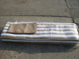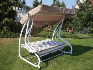 Dotaz na produkt Na splátky ještě dnesnáhradní béžová stříška a poduška na houpačku De Luxe s béžovo-bílými pruhy celk.rozměr podušky: 157x97cm (hloubka sedu 50cm,výška opěrky 47cm) - v celku stříška pro konstrukci o rozměrech: 200x112cm