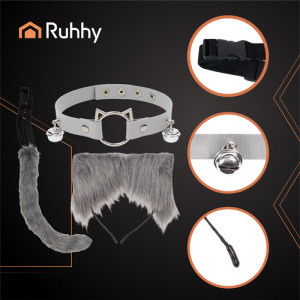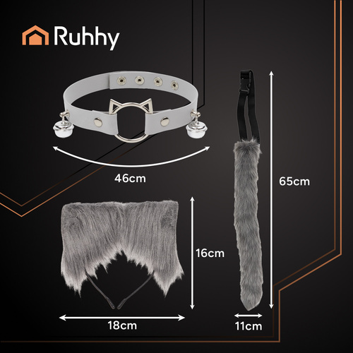 -kompletny zestaw 3w1 - ogon, opaska z uszami i choker
