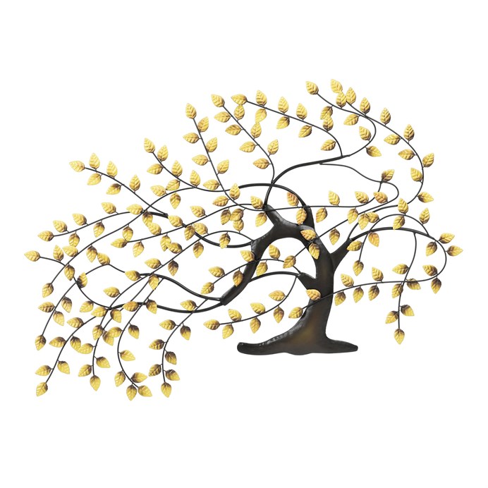 Dotaz na produkt Na splátky ještě dnesNástěnná dekorace ve tvaru stromu je vyrobena z kovu s povrchovou úpravou v zlaté barvě, která dodává prostoru jemný a teplý lesk. Jemné větve s špičatými lístky vytvářejí vzdušný a dynamický vzhled, který oživí jakýkoliv interiér. Dekorace je vhodná pro zavěšení v obývacím pokoji, chodbě nebo kanceláři, kde přinese zajímavý vizuální prvek. Kovové tělo zajišťuje stabilitu a dlouhou životnost, zatímco zlatý odstín podtrhuje stylový charakter doplňku.