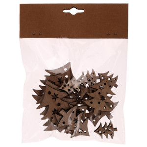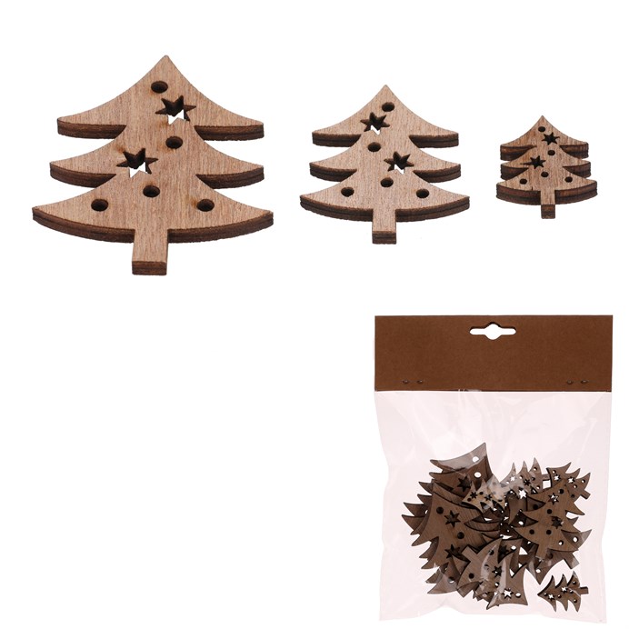 Zkrášlete si vaše sváteční prostředí i díky dřevěným vánočním ozdobám ve tvaru stromků. Jsou všechny v přírodní barvě dřeva a balené po 18 kusech v sáčku, kde najdete mix tří různých velikostí. Je už jen na fantazii a dekorativních schopnostech každého z vás, jak s těmito ozdobami naloží. Každopádně jsou výborným základem pro tvorbu různorodých svátečních aranží, dotvářených vlastníma rukama.