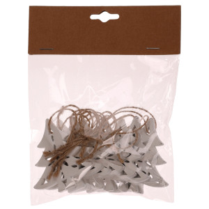 Dotaz na produktZkrášlete si vánoční stromeček nebo jiné vhodné prostory s našimi dřevěnými vánočními ozdobami na pověšení ve tvaru stromků. Jsou všechny v bílé barvě a balené po 8 kusech v sáčku, přičemž každý z nich je opatřen provázkem k okamžitému pověšení na místo určení.