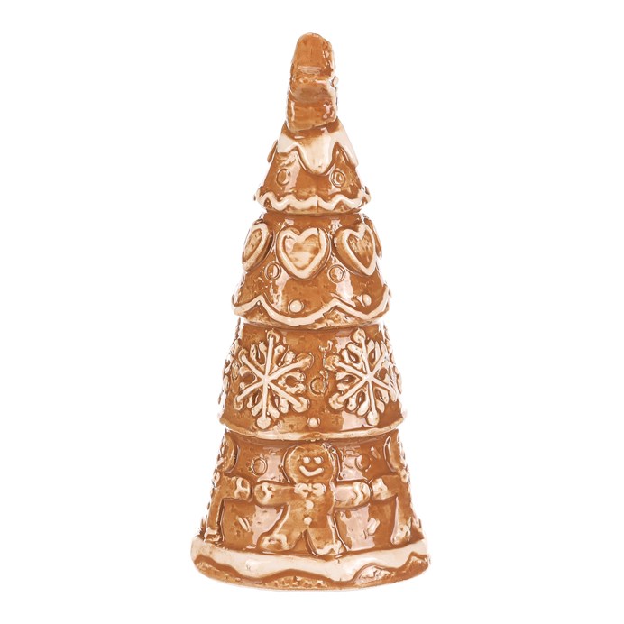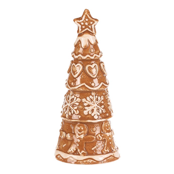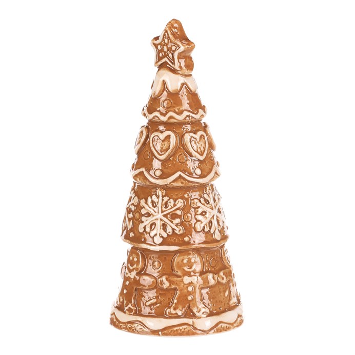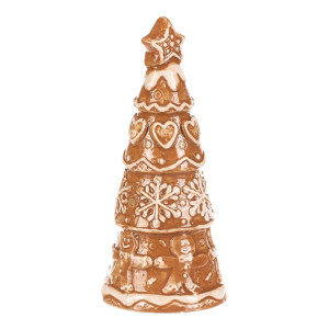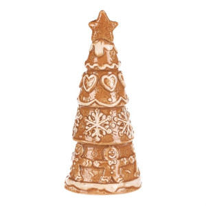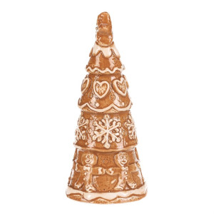 Dotaz na produktKeramický perníkový stromek s hvězdou na špici vypadá jako opravdová vánoční lahůdka. Hnědý povrch s bílou polevou zdobí roztomilá srdíčka, sněhové vločky a panáčci, což mu dodává pohádkový vzhled. Skvělá dekorace, která přinese kouzlo Vánoc do každého prostoru.