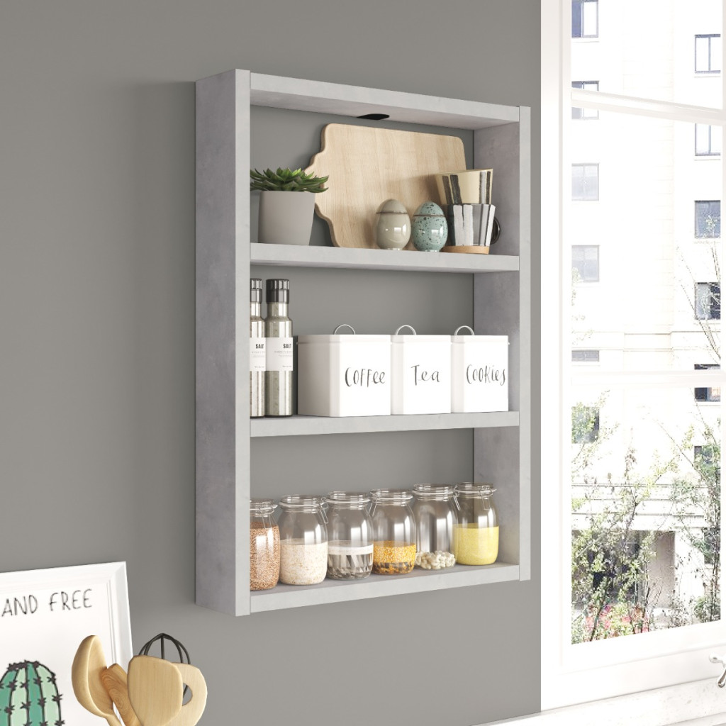 Nástěnná police v odstínu kamene přidává vašemu interiéru stylový a moderní vzhled. Je ideální způsob, jak organizovat váš prostor a přidat mu osobitý nádech.