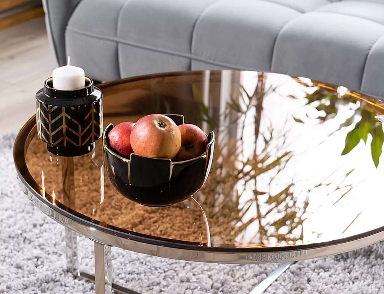 vrchní: jantarové tvrzené sklo, rám: nerezová ocel, barva: stříbrná