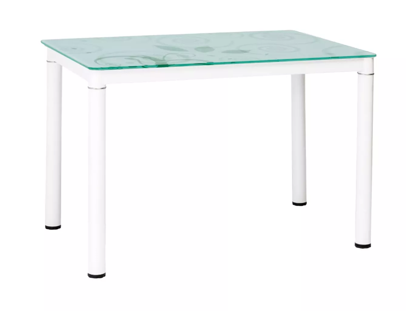 vrchol: tvrzené sklo, rám: lakovaný kov, barvy: bílá
