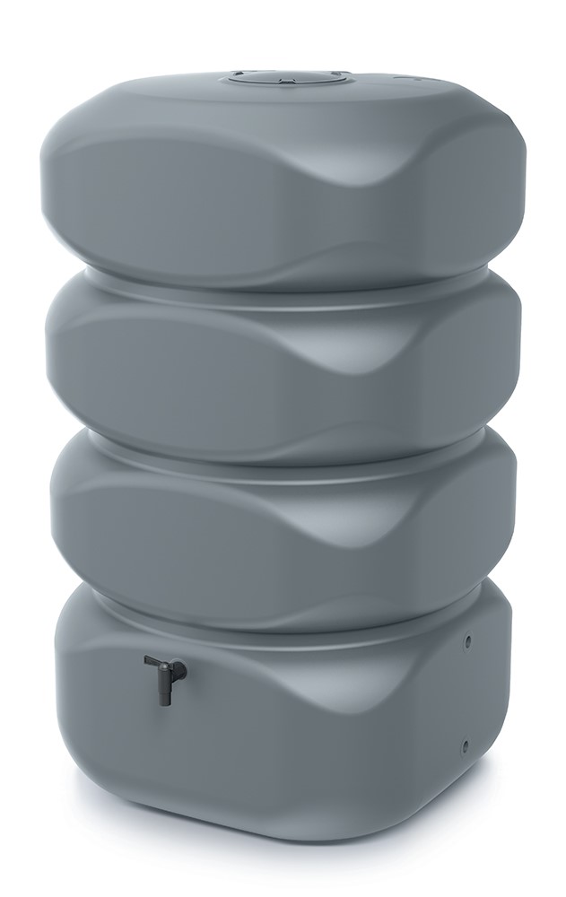 Sud na dešťovou vodu, objem 700 l, odolnost vůči UV záření a změnám teplot, kohoutek a krytka výpusti na zimní období součástí balení, moderní design, 79,2 x 136,7 x 79,2 cm.