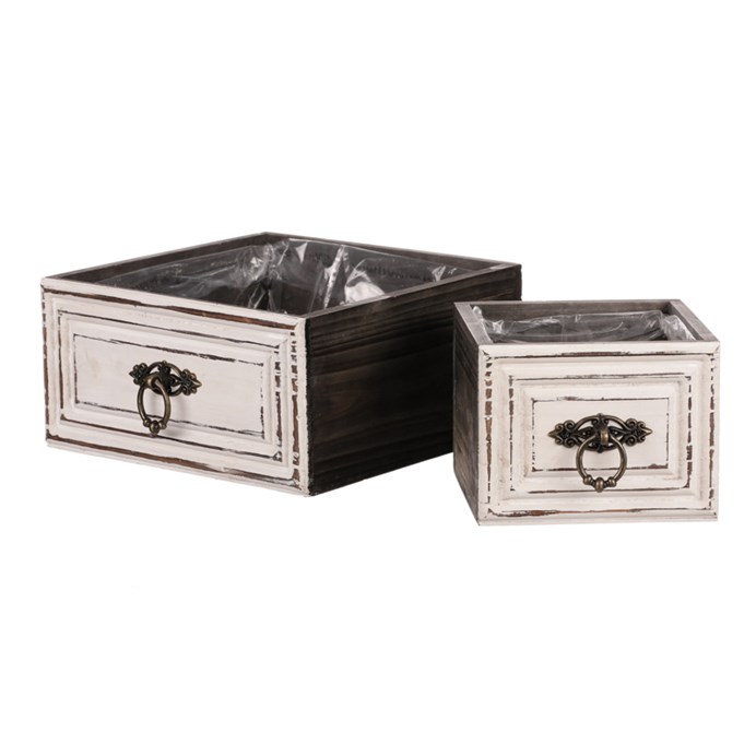 Dotaz na produktSkvělou volbou pro ty, kteří preferují přírodní materiály a rádi by skloubili jejich přirozenou krásu s praktickou funkcí, bude tento zdobný dřevěný obal ve tvaru šuplíku v bílé barvě. Je dostatečně prostorný a šikovně tvarovaný, což umožňuje výsadbu širokého spektra okrasných rostlin a umístění na nejlepší zvolené místo dle vašich představ. Dřevěné obaly jsou poměrně lehčí oproti jiným, což má výhody ve snadnější manipulaci s nimi. Součástí produktu je i ochranná plastová fólie, jenž vyplňuje vnitřní část a chrání ji před vnějšími vlivy. Vytvořte si místo, které bude oplývat přírodní krásou a bude ladit s okolním prostředím díky této nápadité dekoraci s praktickým využitím.