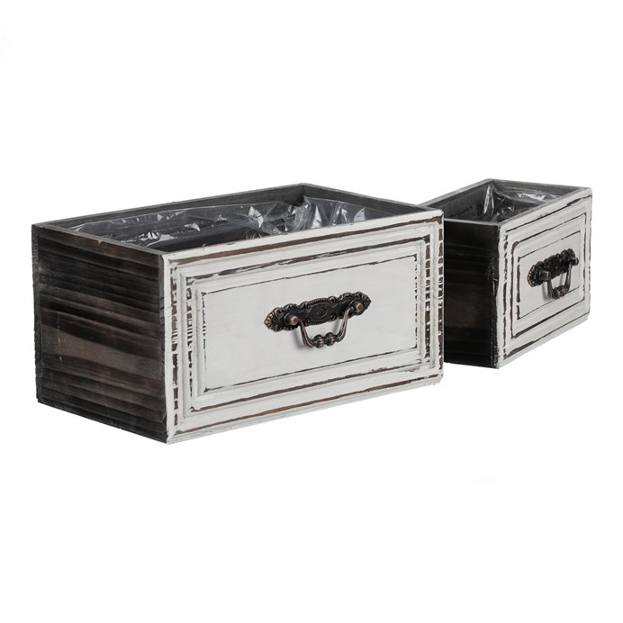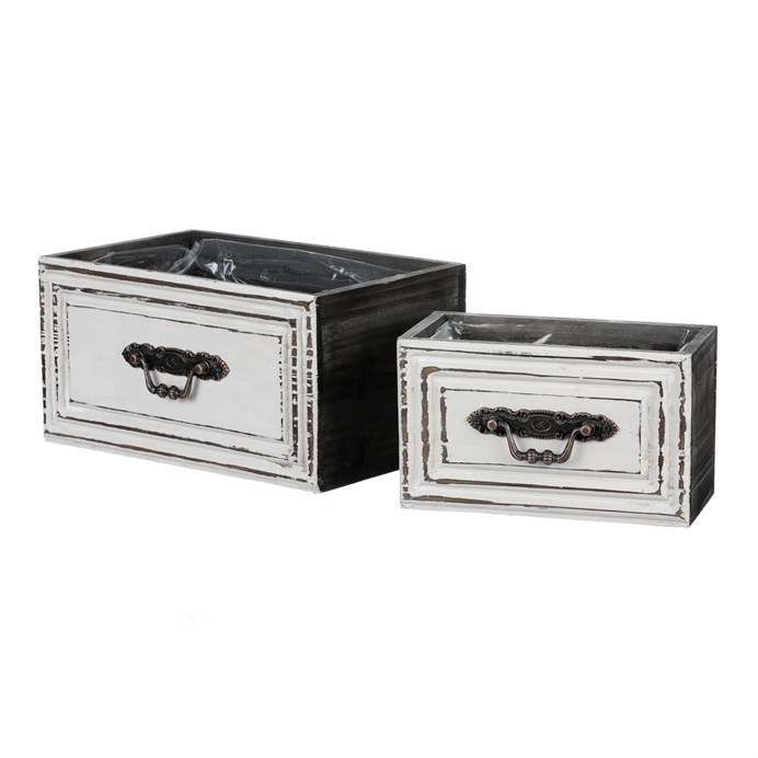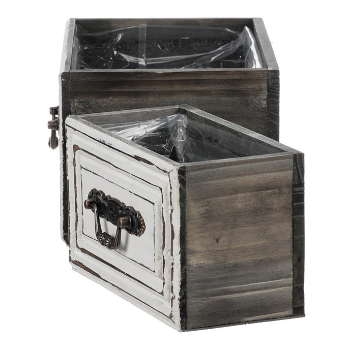 Dotaz na produktSkvělou volbou pro ty, kteří preferují přírodní materiály a rádi by skloubili jejich přirozenou krásu s praktickou funkcí, bude tento zdobný dřevěný obal ve tvaru šuplíku v bílé barvě. Je dostatečně prostorný a šikovně tvarovaný, což umožňuje výsadbu širokého spektra okrasných rostlin a umístění na nejlepší zvolené místo dle vašich představ. Dřevěné obaly jsou poměrně lehčí oproti jiným, což má výhody ve snadnější manipulaci s nimi. Součástí produktu je i ochranná plastová fólie, jenž vyplňuje vnitřní část a chrání ji před vnějšími vlivy. Vytvořte si místo, které bude oplývat přírodní krásou a bude ladit s okolním prostředím díky této nápadité dekoraci s praktickým využitím.