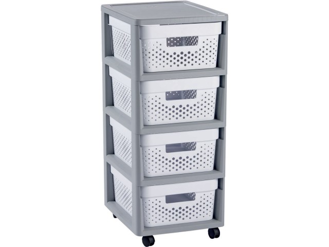 Dotaz na produktJednoduchý způsob uspořádání domácích potřeb - ať konečně všechny drobnosti najdou své stálé místo! Policový díl je vybaven čtyřmi objemnými zásuvkami s pohodlnými úchytkami. Díky jednoduchému skandinávskému stylu se policový díl uplatní v koupelně, ložnici, obývacím pokoji nebo v šatně. Pohodlné používání také zajišťují kolečka, umožňující přemisťování nabídku, a snadno se udržující hladká povrchová úprava. Velikost 30x36x69cm.