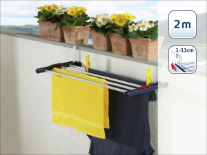 PARAMETRY:Balení: 1 ksDruh výrobku: sušák na prádlo Materiál: kov, plast Barva popisná: bílá/modrá Barva základní: mix barev Typ: závěsný Šířka: 62  cmVýška: 3  cmHloubka: 23  cmSérie:...
