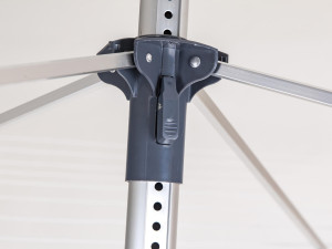 Do země se upevňuje pomocí zemní objímky, která je součástí balení, dále je součástí spínací pásek pro fixaci ramen ve složené poloze, ochranný potah na zip a závěsný obal na kolíčky.