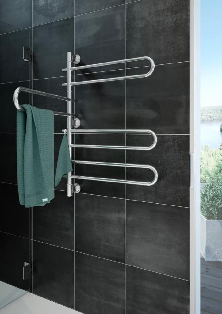 Dotaz na produkt Na splátky ještě dnesVenus - je velmi praktický a flexibilní elektrický sušák vyrobený z leštěné nerezové oceli. Otočná ramena poskytují minimalistický vzhled. Ramena radiátorů lze otočit o 180o, které umožňují snadné zavěšení ručníků. Tento elektrický sušák je vytápěn topným kabelem uvnitř. Vypínač se nachází na spodní straně sušáku. Hmotnost elektrického sušáku je 2,3 kg a výkon je 54 W. Zákazník má na výběr připojení se skrytým elektrickým připojením, nebo pomocí kabelu. Pro připojení do zásuvky je nutné doobjednat připojovací elektrický kabel.