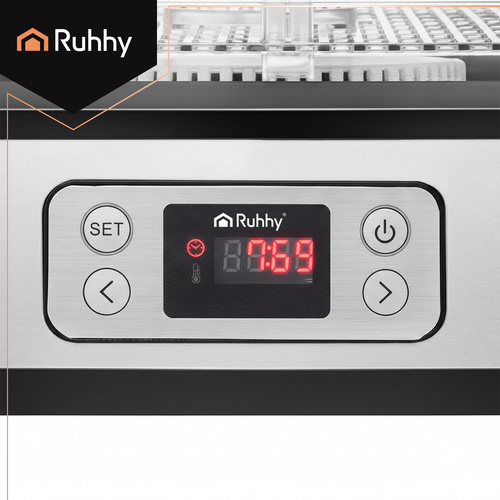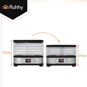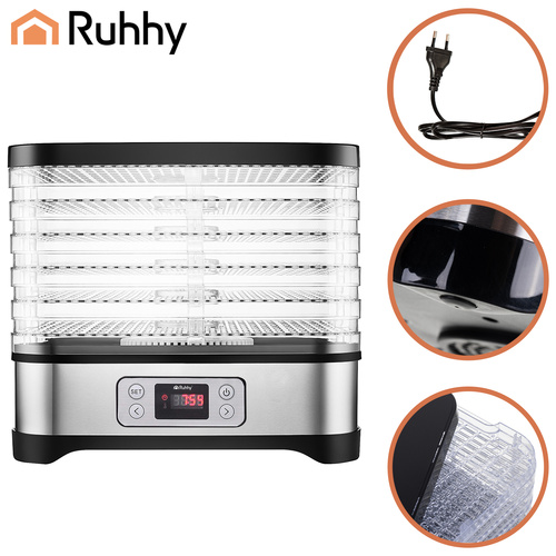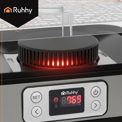 Dotaz na produktChcete mít domácí zásoby připravené po celý rok? Sušička potravin RUHHY rychle a rovnoměrně suší houby, ovoce, zeleninu a bylinky. Až 5 táců (objem 10 litrů), přesná regulace teploty od 35 do 70 °C, 24hodinový časovač a LCD displej poskytují plnou kontrolu nad procesem – pohodlné, čisté a ekonomické. Sada obsahuje sadu praktických táců, podložek a sítek, nůž 3 v 1 a kleště.