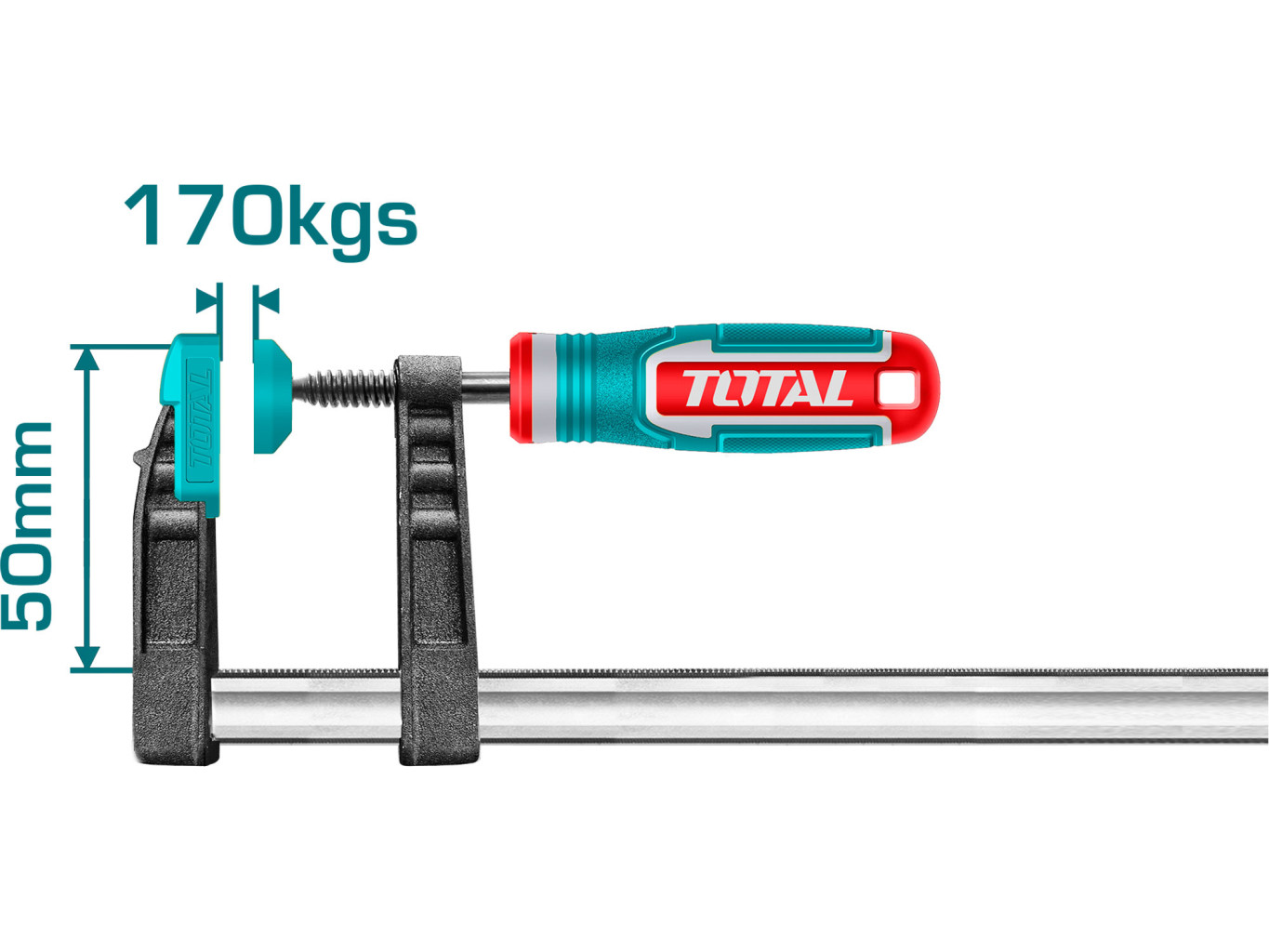 Dotaz na produktVelikost svorky je 50x150mm. Maximální upínací síla je 170kg. Tloušťka a šířka železného pravítka je 5x15mm a průměr závitu šroubu je 11mm.