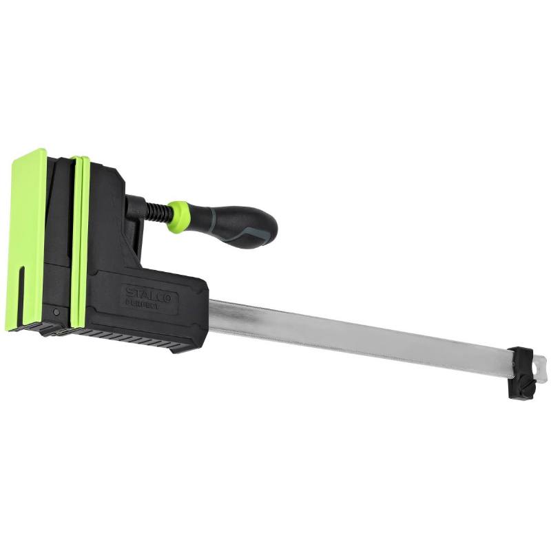 truhlářská svěrka z řady STALCO PERFECTpro rychlé a přesné upevňování rámečků, dveří a dalších prvkůčelisti se speciálním 3,5 palce širokým obložením pro rovnoměrným tlakem bez poškození lisovaného...