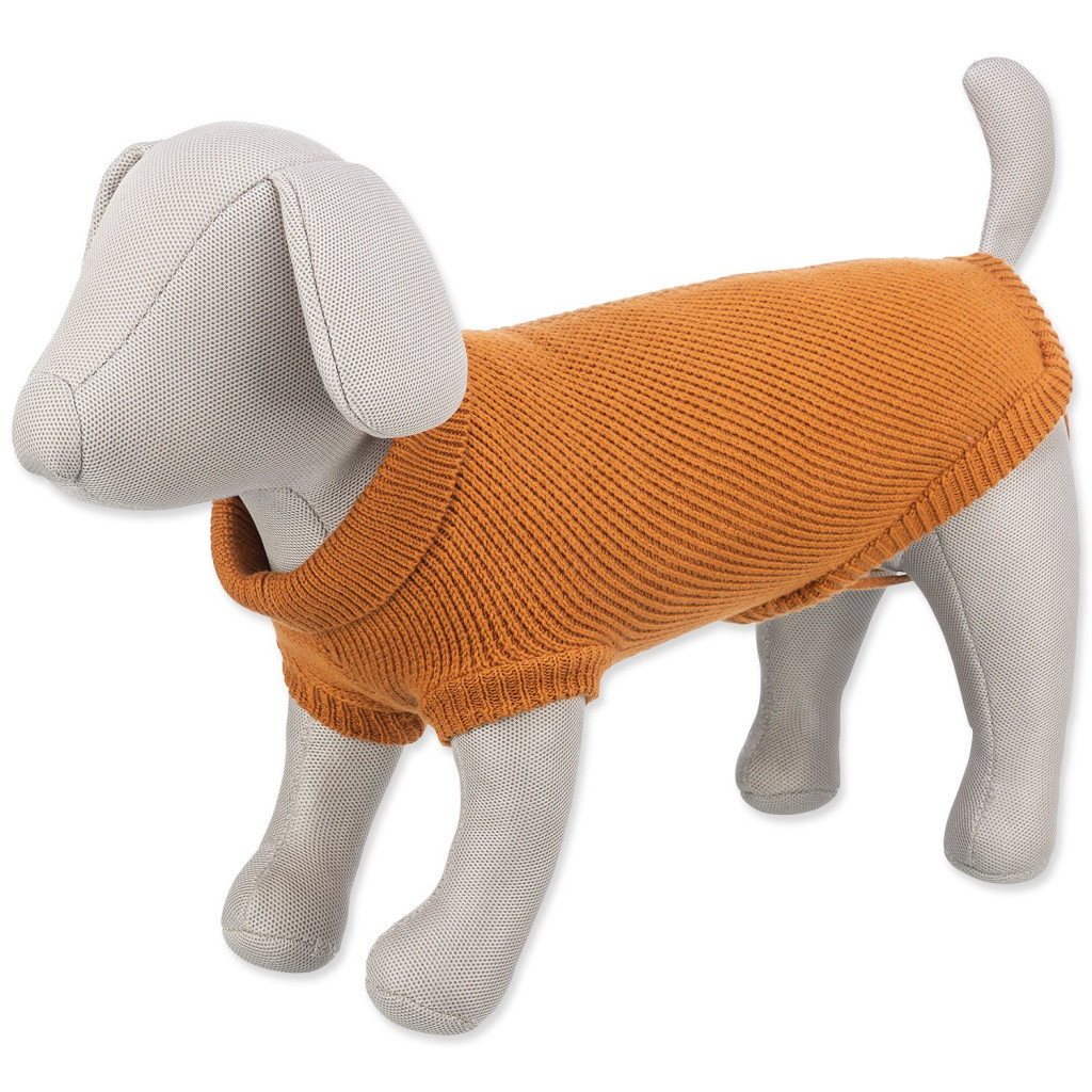 Zajímavým prvkem je široký rolák kolem krku, který dodává svetru moderní a elegantní vzhled. Svetr je navíc vybaven praktickými poutky na zadní nohy, což zajišťuje, že svetr bude na těle psa perfektně sedět.