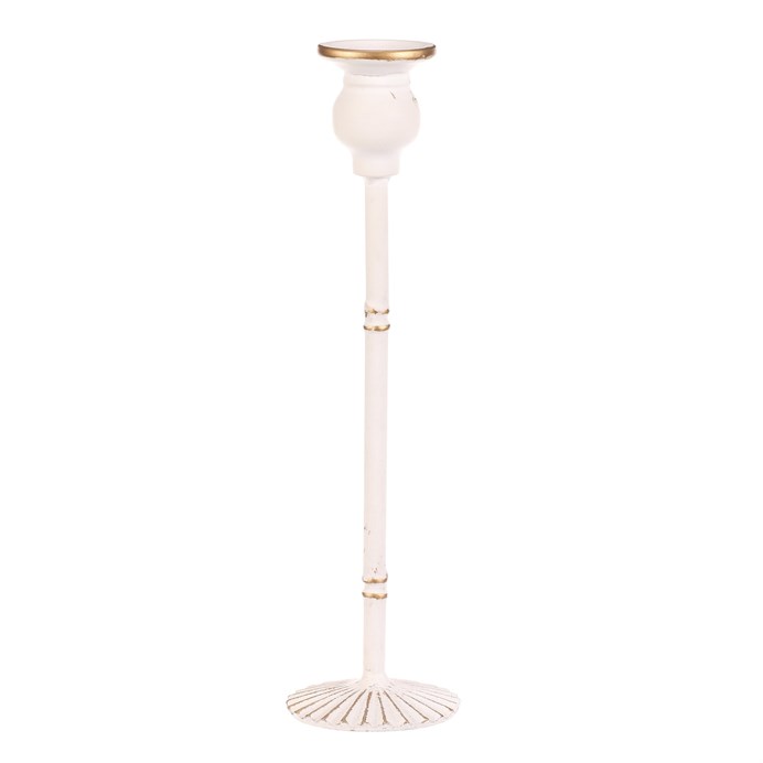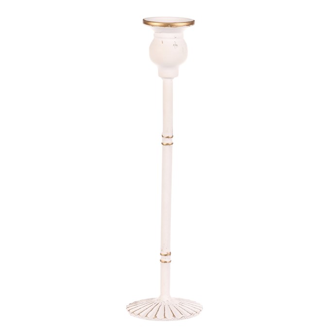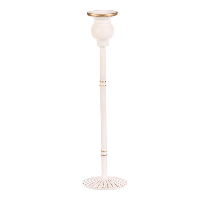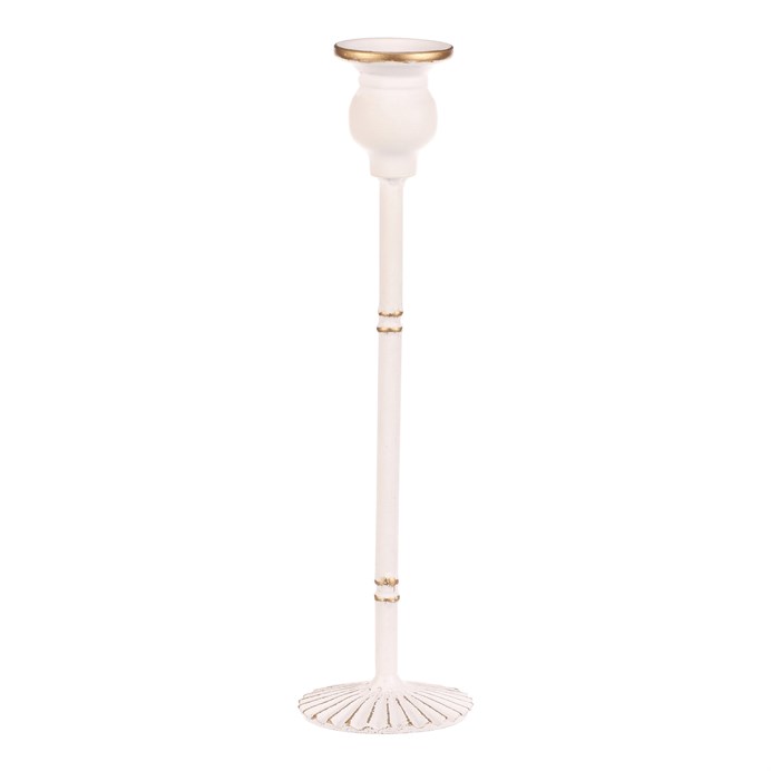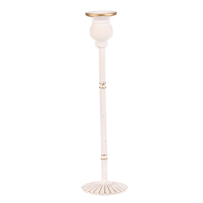 Dotaz na produktElegantní kovový svícen v bílé barvě, vysoký 30 cm, je uzpůsoben pro vložení kónické svíčky. Díky své hmotnosti a rozšířenému podstavci je zajištěna jeho stabilita. Skvěle svým zpracováním a jemným odstínem doplní sváteční stůl při Vánocích, svatbách i jiných slavnostních chvílích.