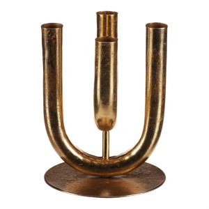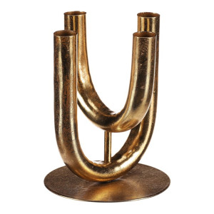 Dotaz na produktČtyřramenný kovový svícen ve zlaté barvě a uzpůsobený pro umístění kónických svíček, je elegantním doplňkem pro vaše adventní aranžmá, případně i pro celoroční použití. Jeho unikátní design ve tvaru dvou překřížených "U" nad sebou, přináší do vašeho domova stylový dotek, který zdůrazní atmosféru klidu a pohody. S tímto svícnem budete mít možnost vytvořit si nezapomenutelné okamžiky a podtrhnout jedinečnost každého momentu.