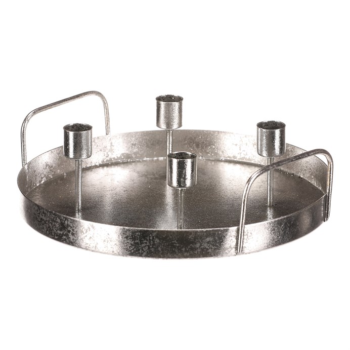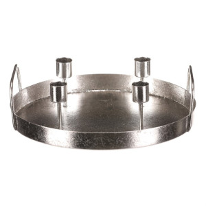 Dotaz na produkt Na splátky ještě dnesElegantní kovový svícen v podobě kulatého tácu, na kterém najdeme držáky pro 4 kónické svíčky, zajišťuje vyvážený design a estetický vzhled. Tento stříbrný svícen je ideální pro vánoční a adventní výzdobu, ať už ho použijete samotný nebo ho ozdobíte dalšími dekorativními prvky. Buďte kreativní a vytvořte si úchvatné vánoční aranžmá, které zvýrazní krásu vašeho svátečně zdobeného domova.