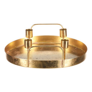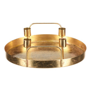 Dotaz na produkt Na splátky ještě dnesElegantní kovový svícen v podobě kulatého tácu, na kterém najdeme držáky pro 4 kónické svíčky, zajišťuje vyvážený design a estetický vzhled. Tento zlatý svícen je ideální pro vánoční a adventní výzdobu, ať už ho použijete samotný nebo ho ozdobíte dalšími dekorativními prvky. Buďte kreativní a vytvořte si úchvatné vánoční aranžmá, které zvýrazní krásu vašeho svátečně zdobeného domova.