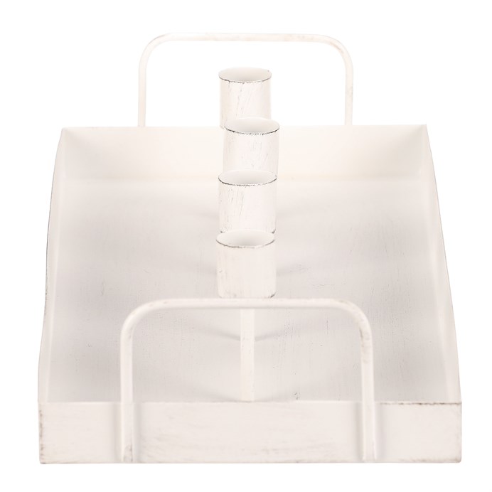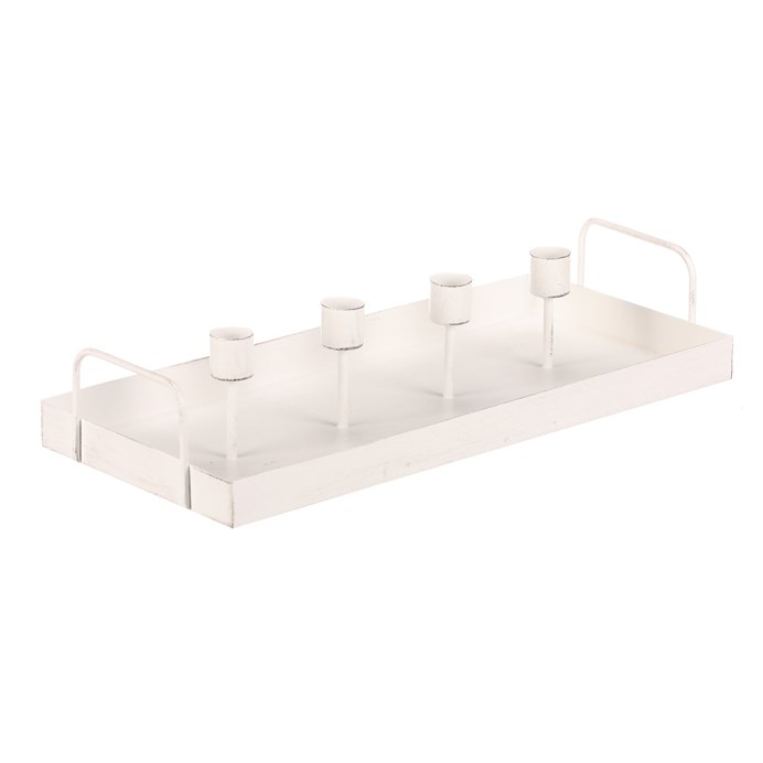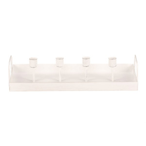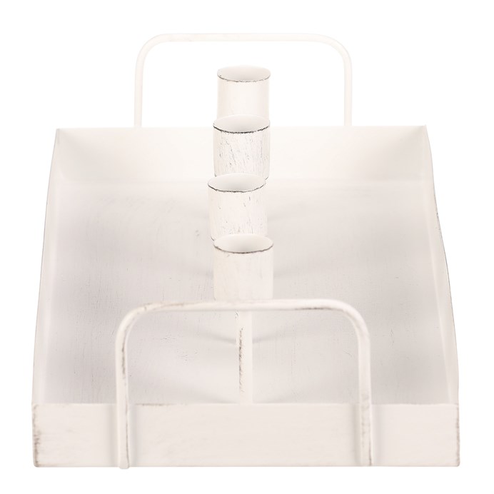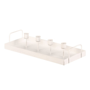 Dotaz na produkt Na splátky ještě dnesElegantní kovový svícen v podobě obdélníkového tácu se dvěma uchy, na kterém najdeme držáky pro 4 kónické svíčky, zajišťuje vyvážený design a estetický vzhled. Tento bílý svícen je ideální pro vánoční a adventní výzdobu, ať už ho použijete samotný nebo ho ozdobíte dalšími dekorativními prvky. Buďte kreativní a vytvořte si úchvatné vánoční aranžmá, které zvýrazní krásu vašeho svátečně zdobeného domova.
