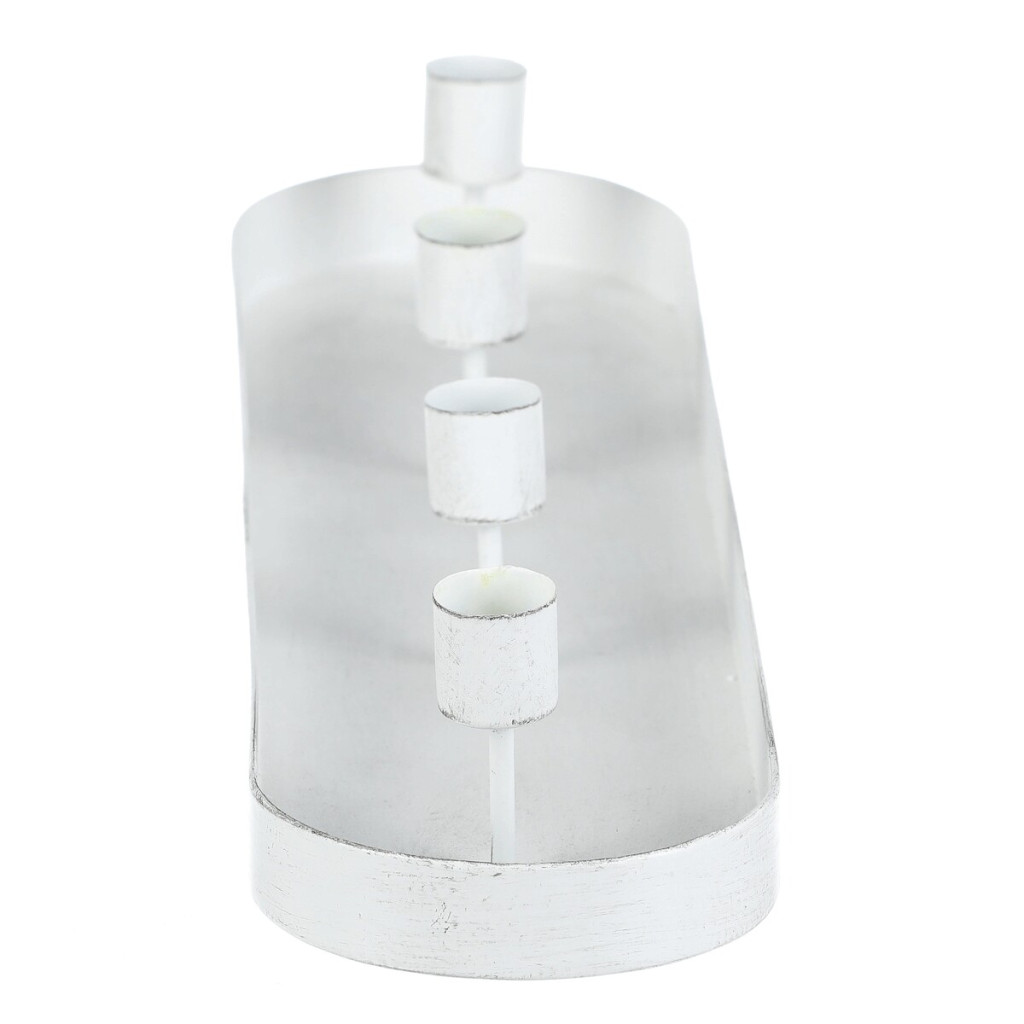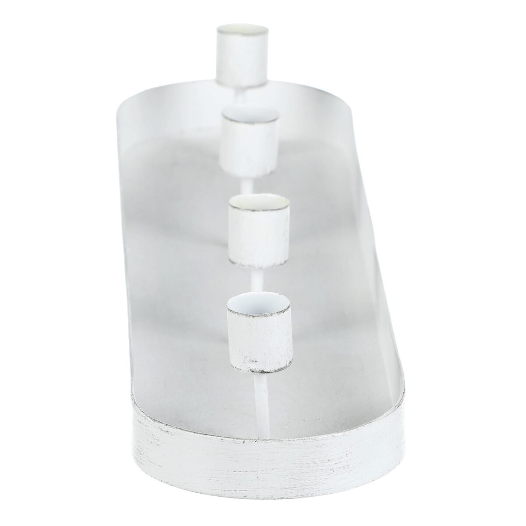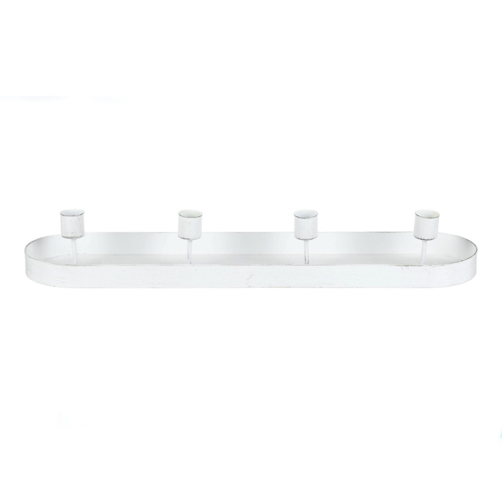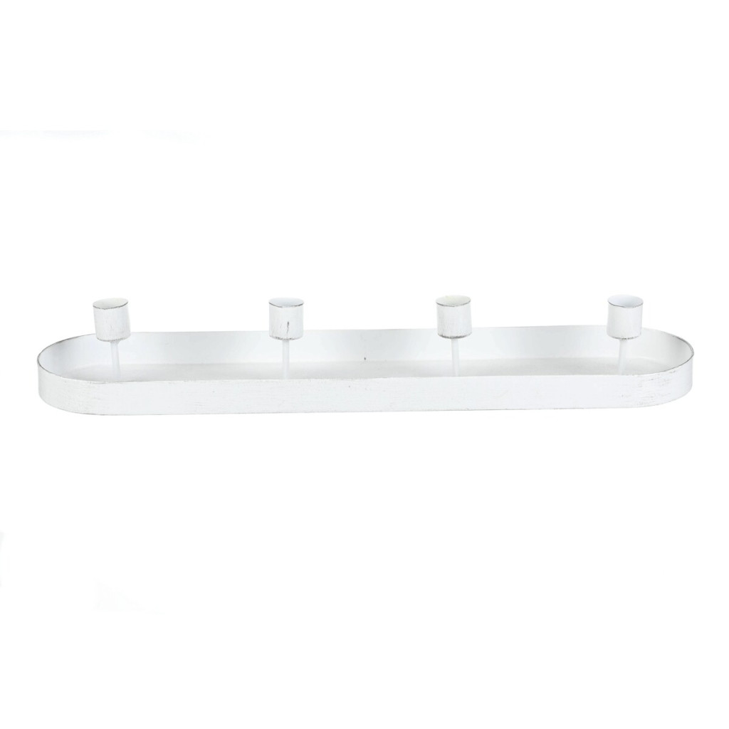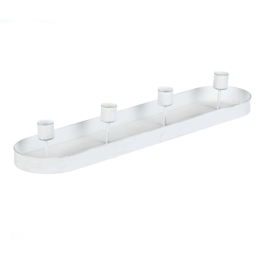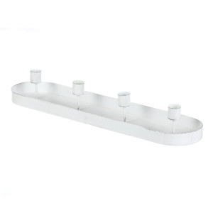Dotaz na produkt Na splátky ještě dnesKovový bílý svícen na čtyři kónické svíčky, v podobě elegantního oválného tácu, je ideálním doplňkem pro váš adventní stůl. Jeho prostý, a přesto vkusný design, dodá vaší sváteční výzdobě ten správný nádech elegance. Tento svícen je skvělým centrálním prvkem na vašem stole a zároveň vkusnou dekorací, která podtrhne vánoční magii a přinese do domova útulnou a slavnostní náladu.