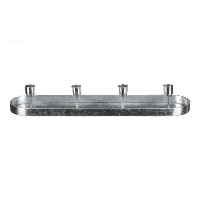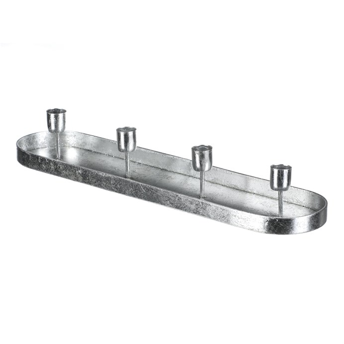 Dotaz na produkt Na splátky ještě dnesKovový stříbrný svícen na čtyři kónické svíčky, v podobě elegantního oválného tácu, je ideálním doplňkem pro váš adventní stůl. Jeho prostý, a přesto vkusný design, dodá vaší sváteční výzdobě ten správný nádech elegance. Tento svícen je skvělým centrálním prvkem na vašem stole a zároveň vkusnou dekorací, která podtrhne vánoční magii a přinese do domova útulnou a slavnostní náladu.