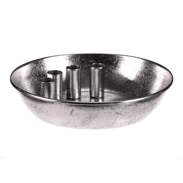 Dotaz na produktPřineste si do svého domova světlo a eleganci s tímto stříbrným kovovým svícnem, určeným pro čtyři kónické svíčky. Jeho provedení ve tvaru misky, přidá do interiéru další úroveň estetiky a praktičnosti. Umožňuje vám vytvořit atraktivní předvánoční, sváteční výzdobu se svíčkami s možností vyzdobit prostor kolem nich.