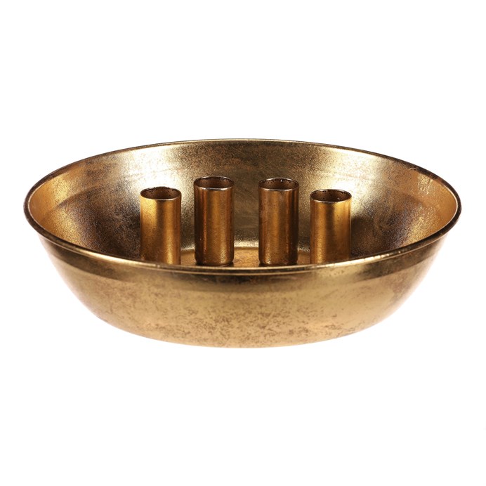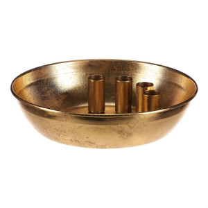 Dotaz na produktPřineste si do svého domova světlo a eleganci s tímto zlatým kovovým svícnem, určeným pro čtyři kónické svíčky. Jeho provedení ve tvaru misky, přidá do interiéru další úroveň estetiky a praktičnosti. Umožňuje vám vytvořit atraktivní předvánoční, sváteční výzdobu se svíčkami s možností vyzdobit prostor kolem nich.