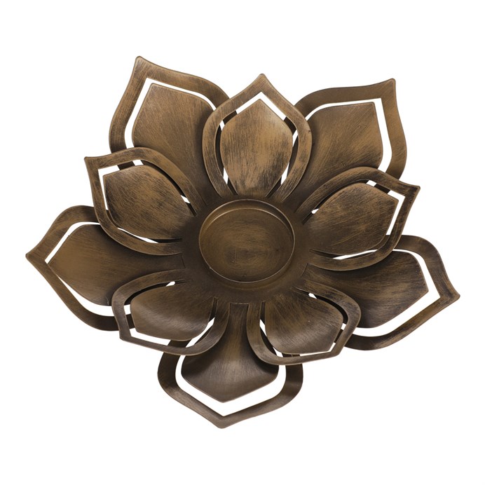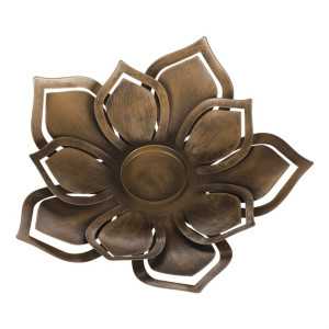 Dotaz na produktTento kovový svícen slouží jako základna pro vložení svíček různých typů. Svým tvarem připomíná květ se špičatými okvětními lístky, a právě jeho střed je určen pro postavení svíčky. Barevným provedením v nás vzbuzuje dojem rezavého dekoračního předmětu s bohatou historií. Nechte jej vyniknout na krásném dřevěném stole, poličce, nebo komodě. Miskovitý tvar této dekorace umožnuje navíc ozdobit okolí svíčky dalšími drobnostmi. Rozhodně ale bude společně s pečlivě zvolenou svíčkou sám o sobě úžasnou ozdobou vašeho interiéru.
