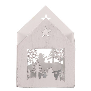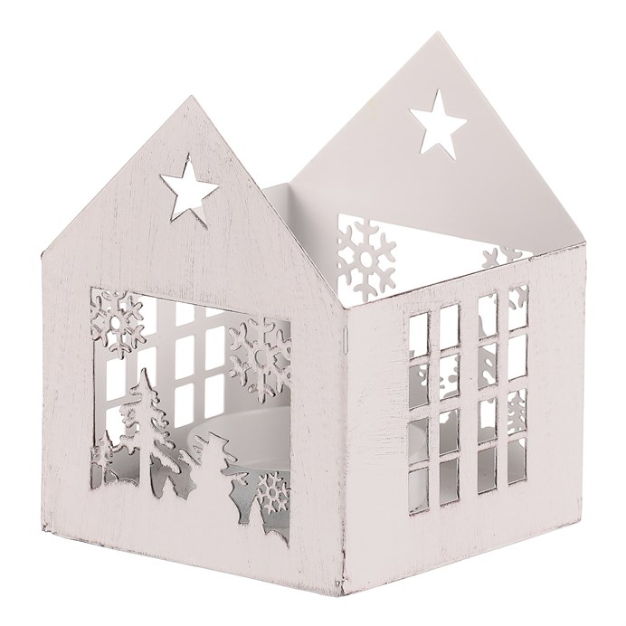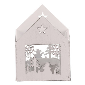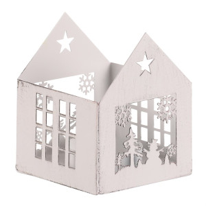 Dotaz na produktKovový svícen ve tvaru domečku v bílém dekoru, dodá interiéru nádech elegance a možnost vyvolat kouzelný světelný efekt. Tento svícen nejenže přináší světlo a zářivou atmosféru, ale také představuje půvabný dekorační prvek pro váš domov. Umístěte do něj svíčku a sledujte, jak se zářivé světlo line prostorem. Ideální volba pro vánoční výzdobu, která okouzlí každého, kdo váš domov navštíví.
