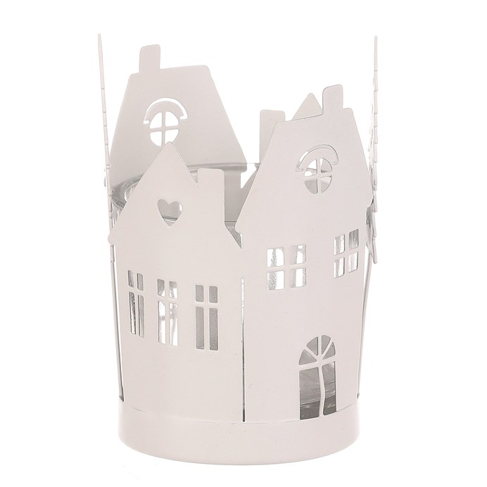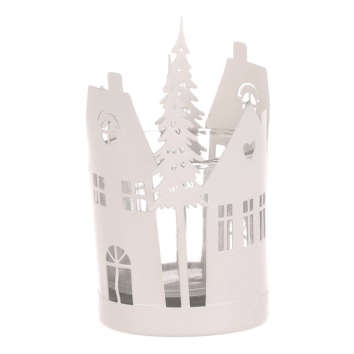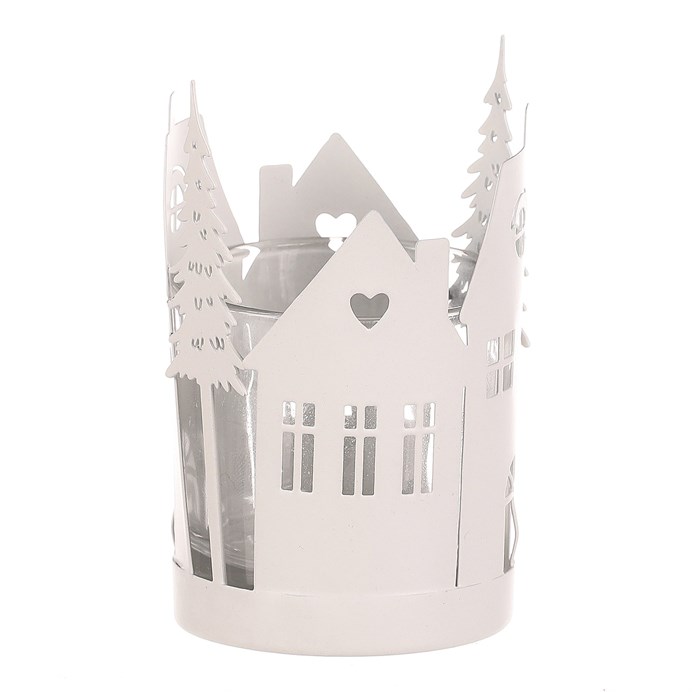 Dotaz na produktKovový svícen s domečky a stromky je dokonalou doplňkovou dekorací pro váš vánoční interiér. Jeho bílá barva přináší do prostoru zimní nádech s puncem historie, zatímco detaily domečků a stromečků po obvodu dodávají dekoraci na jedinečnosti. Skleněná miska uvnitř svícnu poskytuje ochranný prostor pro umístění čajové nebo LED svíčky, která bude vyzařovat nádherné světlo skrze okénka a mezery mezi větvičkami. Bílá barva vytváří příjemnou atmosféru, která zvýrazní kouzlo vánočního období.