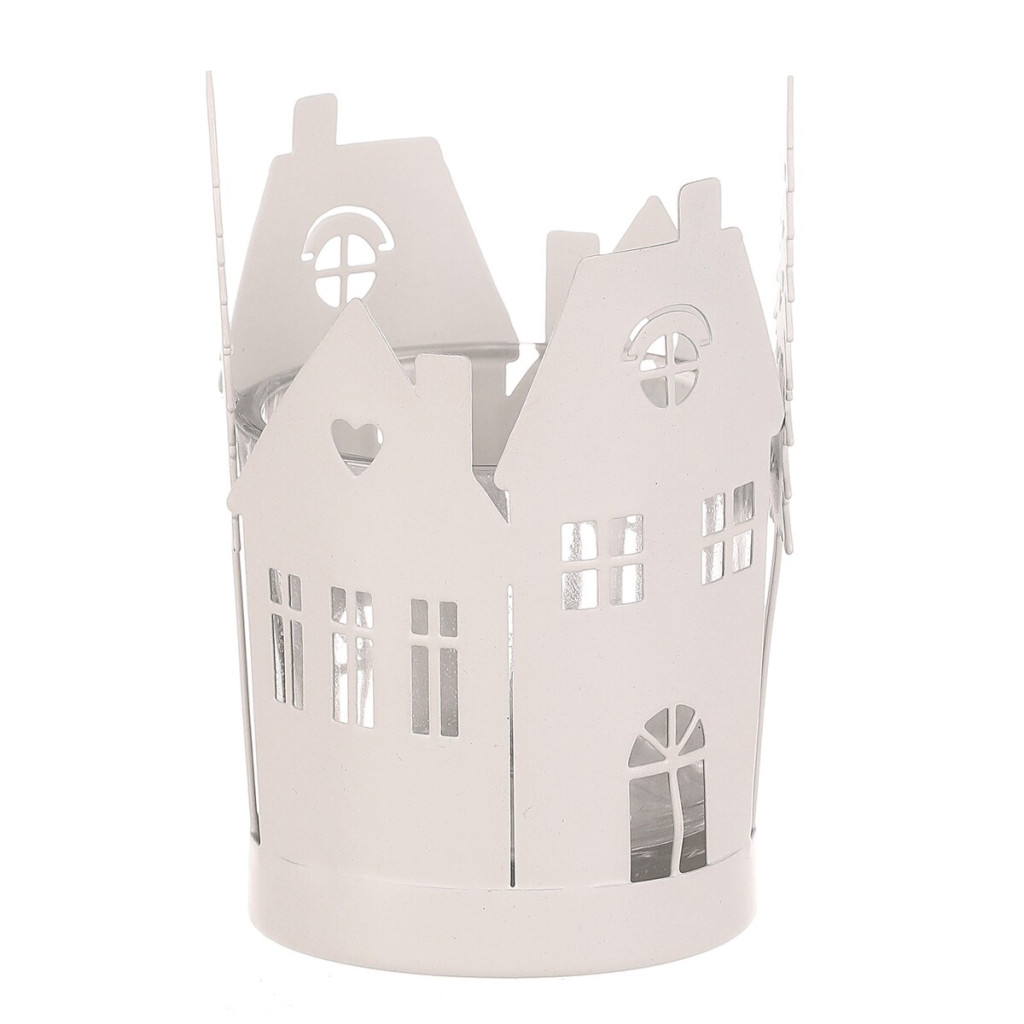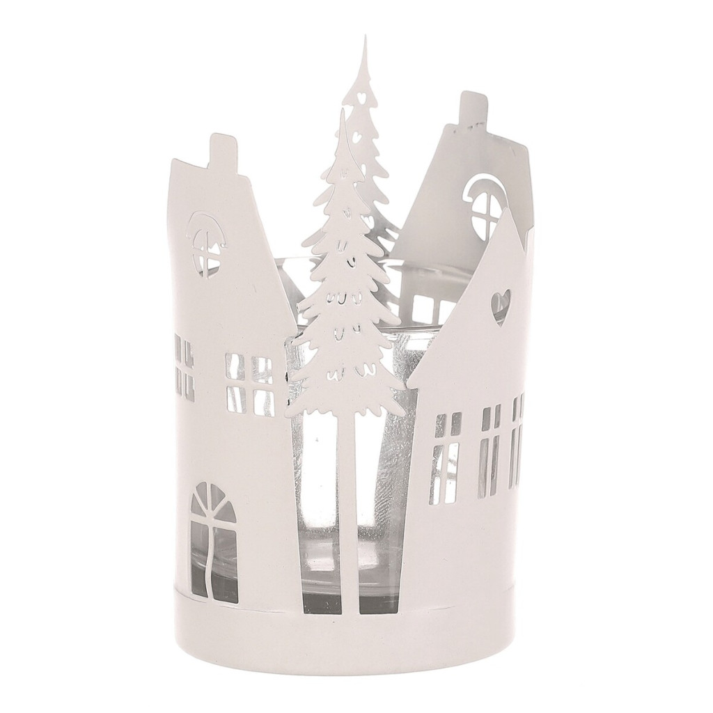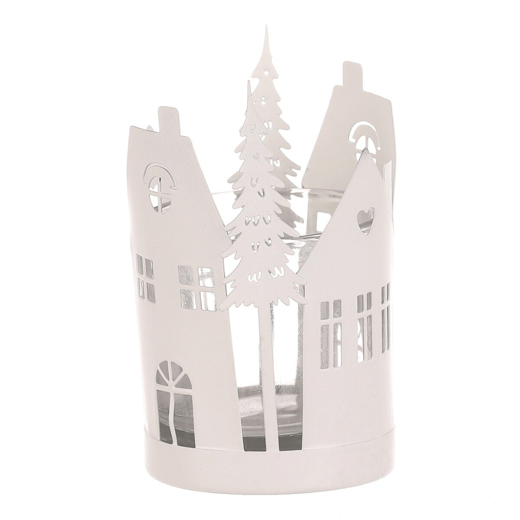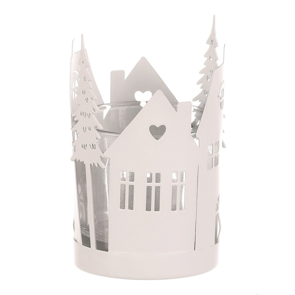 Dotaz na produkt Na splátky ještě dnesKovový svícen s domečky a stromky je dokonalou doplňkovou dekorací pro váš vánoční interiér. Jeho bílá barva přináší do prostoru zimní nádech s puncem historie, zatímco detaily domečků a stromečků po obvodu dodávají dekoraci na jedinečnosti. Skleněná miska uvnitř svícnu poskytuje ochranný prostor pro umístění čajové nebo LED svíčky, která bude vyzařovat nádherné světlo skrze okénka a mezery mezi větvičkami. Bílá barva vytváří příjemnou atmosféru, která zvýrazní kouzlo vánočního období.