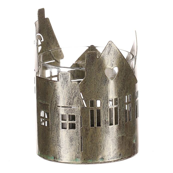 Dotaz na produktKovový svícen s domečky po obvodu je dokonalou doplňkovou dekorací pro váš vánoční interiér. Jeho antikvární zlatý odstín přináší do prostoru nádech historie s dlouholetou tradicí, zatímco detaily domečků dodávají dekoraci na jedinečnosti. Skleněná miska uvnitř svícnu poskytuje ochranný prostor pro umístění čajové nebo LED svíčky, která bude vyzařovat nádherné světlo skrze všechna okénka a dvířka. Tento barevný odstín připomíná dekoraci s dlouhou historií a vytváří teplou a přívětivou atmosféru, která zvýrazní kouzlo vánočního období.