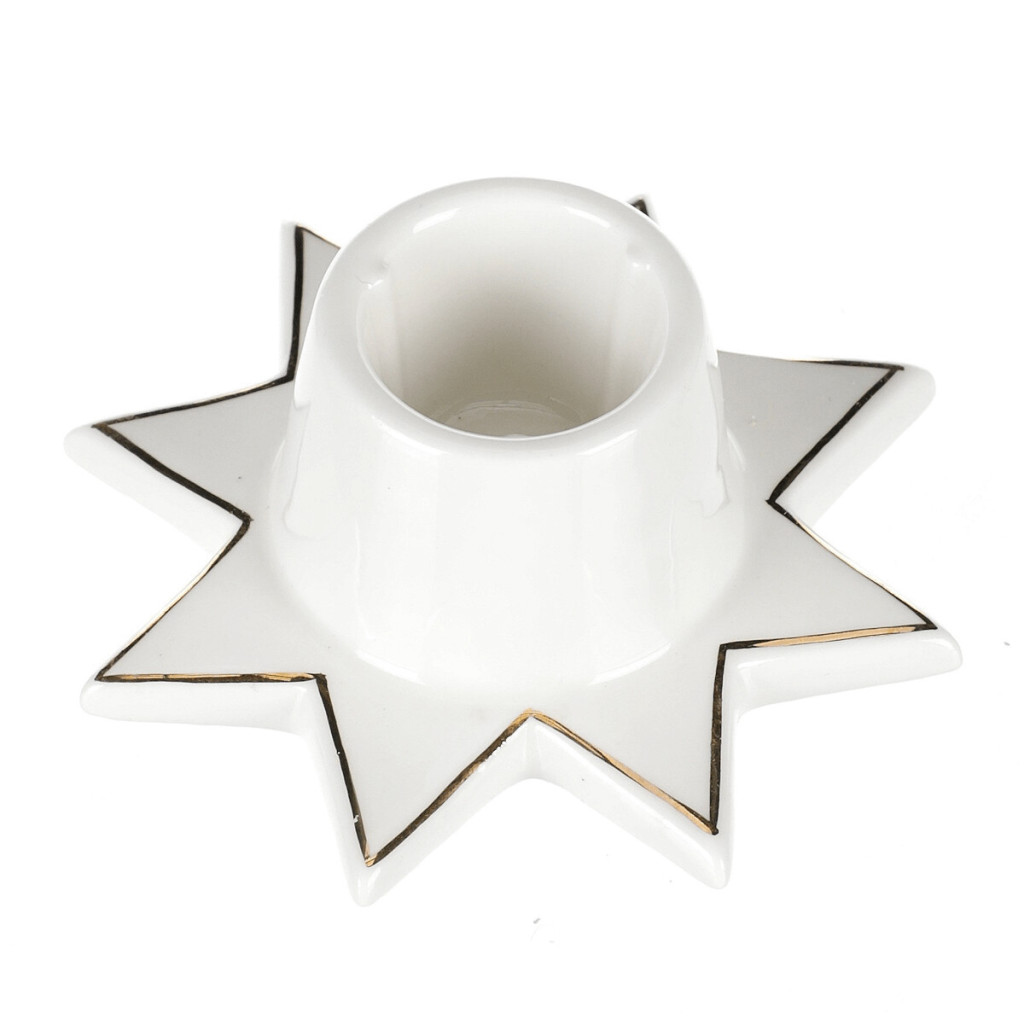 Dotaz na produktZvýrazněte vánoční atmosféru s naším elegantním porcelánovým svícnem pro vložení kónické svíčky se základnou ve tvaru hvězdičky v bílé barvě. Tato univerzální vánoční ozdoba přináší do vašeho domova nádech tradičního kouzla a šarmu. Díky svému nadčasovému vzhledu se skvěle hodí do různých interiérů a zajišťuje krásné světlo, které zpříjemní váš sváteční čas.