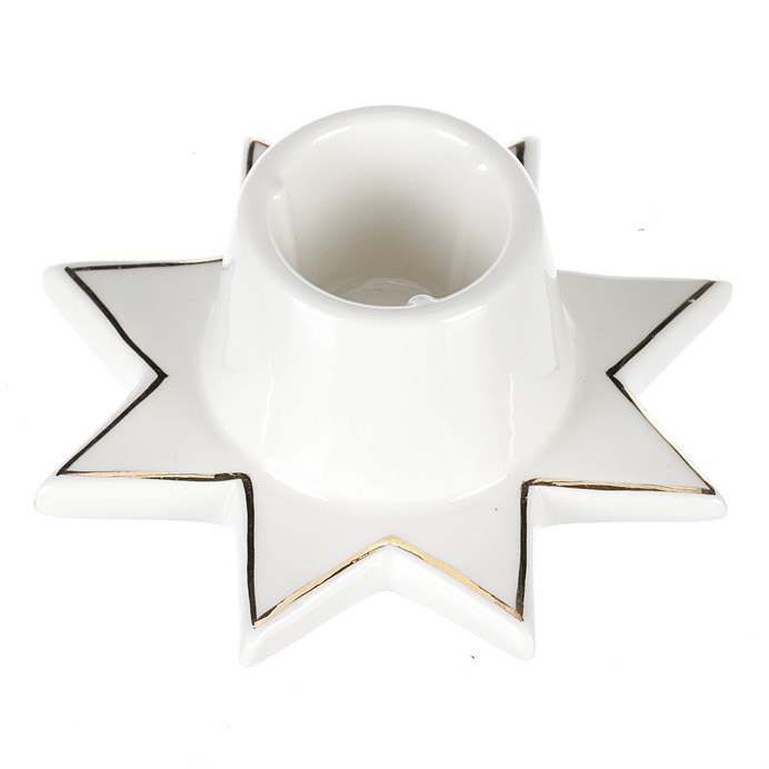 Dotaz na produktZvýrazněte vánoční atmosféru s naším elegantním porcelánovým svícnem pro vložení kónické svíčky se základnou ve tvaru hvězdičky v bílé barvě. Tato univerzální vánoční ozdoba přináší do vašeho domova nádech tradičního kouzla a šarmu. Díky svému nadčasovému vzhledu se skvěle hodí do různých interiérů a zajišťuje krásné světlo, které zpříjemní váš sváteční čas.