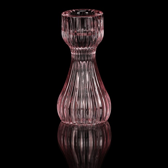 Dotaz na produktSkleněný svícen na kónickou svíčku s výškou 10,5 cm z broušeného skla v elegantním růžovém odstínu. Jeho jedinečný design vynikne v každém interiéru, a díky své hmotnosti bude stabilní a bezpečný pro ozdobení stolů a poliček. Jedná se o působivou dekoraci, která po zapálení svíčky rozzáří prostor neodolatelnými třpytivými odlesky všemi směry.