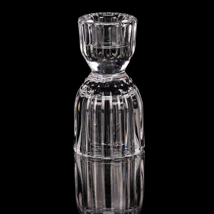Dotaz na produktSkleněný svícen na kónickou svíčku s výškou 10 cm z čirého broušeného skla. Jeho jedinečný design vynikne v každém interiéru, a díky své hmotnosti bude stabilní a bezpečný pro ozdobení stolů a poliček. Jedná se o působivou dekoraci, která po zapálení svíčky rozzáří prostor neodolatelnými třpytivými odlesky všemi směry.