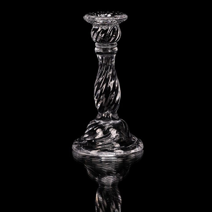 Dotaz na produktSkleněný svícen na kónickou svíčku s výškou 20 cm z čirého broušeného skla. Jeho elegantní design vynikne v každém interiéru, a díky své hmotnosti bude stabilní a bezpečný pro ozdobení stolů a poliček. Jedná se o působivou dekoraci, která po zapálení svíčky rozzáří prostor neodolatelnými třpytivými odlesky všemi směry.