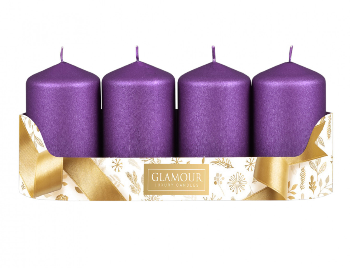 Dotaz na produktAdventní svíčky se špičatou hlavou a povrchovou úpravou škrábáním, v matně-metalickém provedení. Moderní barvy a luxusní vzhled pozdvihnou každý adventní věnec. Doba hoření: 15 hodin. Rozměry: průměr 5 cm, výška 9 cm. V balení jsou 4 ks svíček. Barva: fialová.