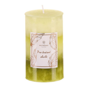 Dotaz na produktUžívejte si plnými doušky nezapomenutelné romantické chvíle, nebo jen pokojně relaxujte po zapálení knotu této aromatické svíčky s jedinečnou vůní citrónové trávy. Vyrobena je ze stoprocentního parafínového vosku, a díky svému vzhledu, kdy se střídají nad sebou různé odstíny zelené, se stane i sama o sobě oku lahodící ozdobou. S čistou hmotností vosku 245 gramů a celkovou dobou hoření až 30 hodin, nabízí neodolatelné spojení estetiky a dlouhotrvajícího světelného efektu doprovázeného příjemnou vůní.