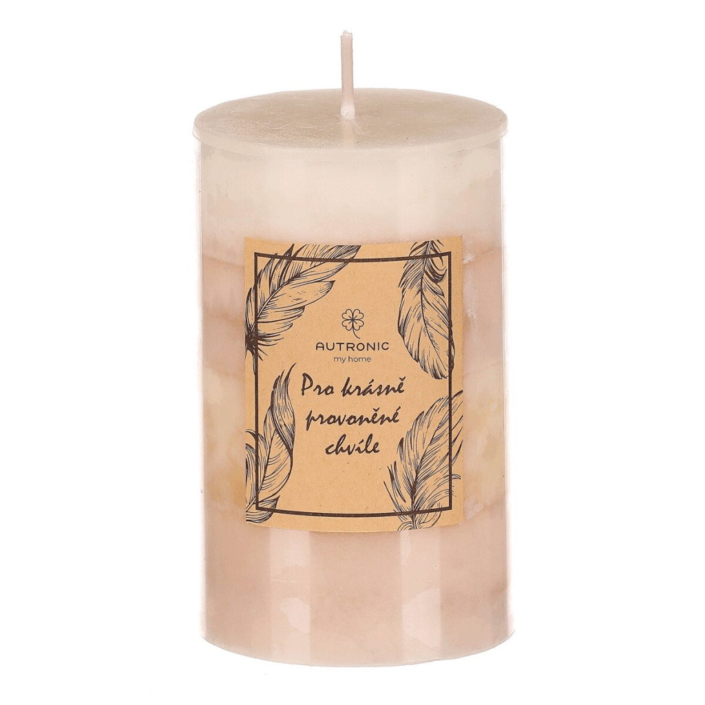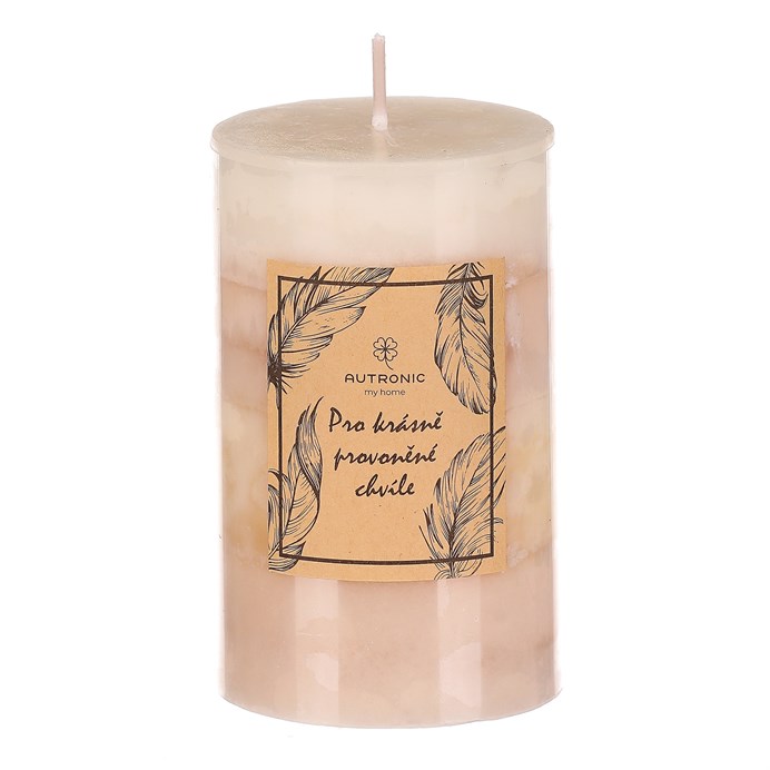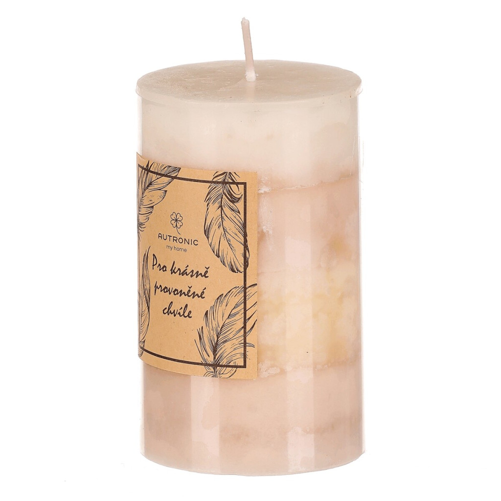 Dotaz na produktProžijte nezapomenutelné romantické chvíle, nebo jen pokojně relaxujte po zapálení knotu této aromatické svíčky s jedinečnou vůní vanilky. Vyrobena je ze stoprocentního parafínového vosku, a díky svému vzhledu, kdy se střídají nad sebou různé odstíny béžové, se stane i stylovou dekorací sama o sobě. S čistou hmotností vosku 245 gramů a celkovou dobou hoření až 30 hodin, nabízí jedinečné spojení estetiky a dlouhotrvajícího světelného efektu doprovázeného příjemnou vůní.