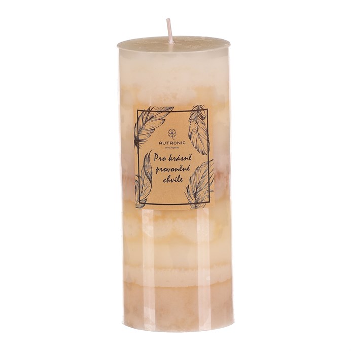 Dotaz na produktProžijte nezapomenutelné romantické chvíle, nebo jen pokojně relaxujte po zapálení knotu této aromatické svíčky s jedinečnou vůní vanilky. Vyrobena je ze stoprocentního parafínového vosku, a díky svému vzhledu, kdy se střídají nad sebou různé odstíny béžové, se stane i stylovou dekorací sama o sobě. S čistou hmotností vosku 367 gramů a celkovou dobou hoření až 54 hodin, nabízí jedinečné spojení estetiky a dlouhotrvajícího světelného efektu doprovázeného příjemnou vůní.