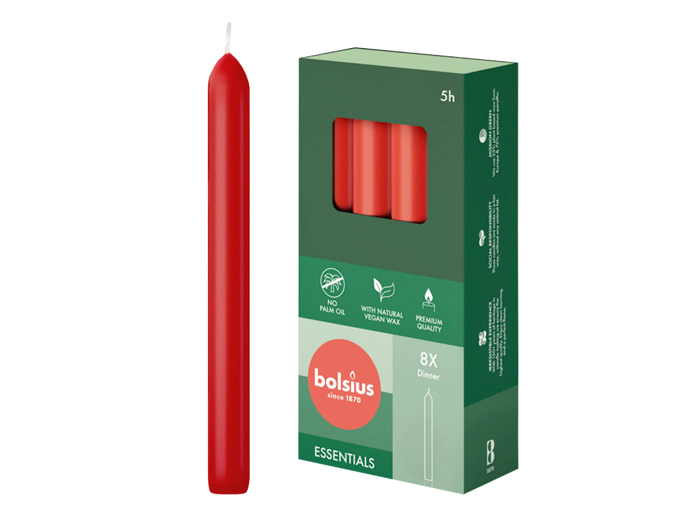 Dotaz na produktKvalitní stolní svíčky vyrobené z přírodního veganského vosku bez obsahu palmového oleje. Hoří čistě a rovnoměrně bez nadměrného kouření. Díky klasickému tvaru jsou vhodné pro stolní svícny i sváteční aranžmá. Ideální pro každodenní použití i slavnostní příležitosti. Balení obsahuje 8 kusů. Doba hoření: přibližně 5 hodin. Barva: červená.