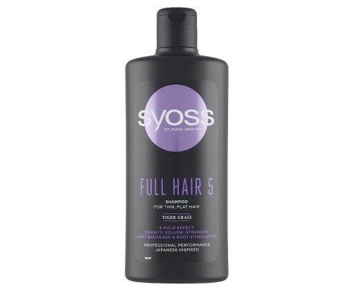 Dotaz na produktSyoss Full Hair 5 šampon s Japonskem inspirovaným složením - s tygří trávou pro slabé a splihlé vlasy. Asií inspirované přírodní ingredience jsou kombinovány s aminokomplexem obsahujícím aminokyseliny - stavební kameny vlasových vláken, které pomáhají udržovat vlasy silné a zdravě vypadající