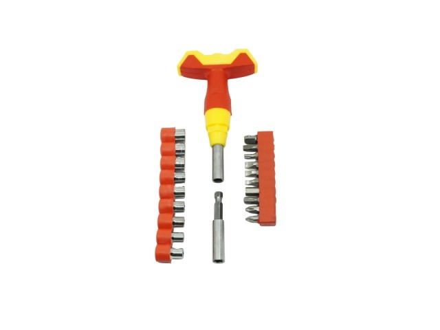 Univerzální a kompaktní sada od značky Asist obsahuje vše potřebné pro šroubování a utahování v domácnosti, dílně i na cestách. Ergonomický T-šroubovák poskytuje lepší přenos síly a komfort při práci.Obsah balení (20 ks):1× T-šroubovák – ergonomická rukojeť ve tvaru T pro vyšší krouticí moment11× bit – různé druhy šroubovacích nástavců (ploché, křížové, torx atd.)9× nástrčná hlavice – pro šrouby a matice různých velikostí