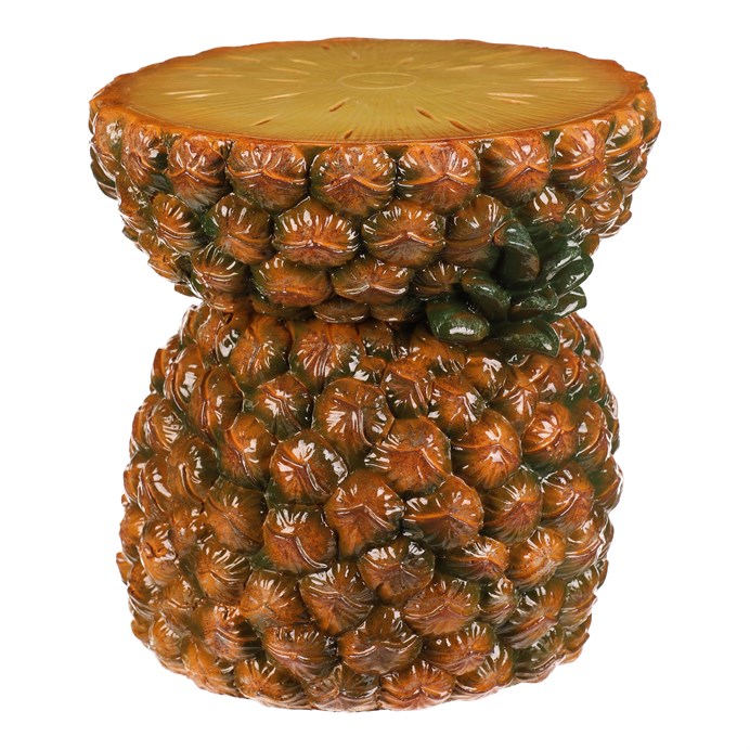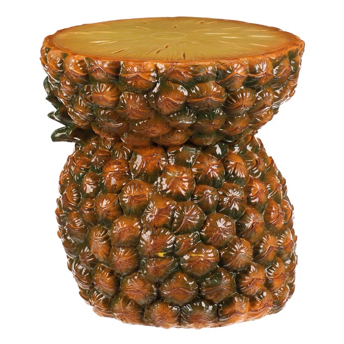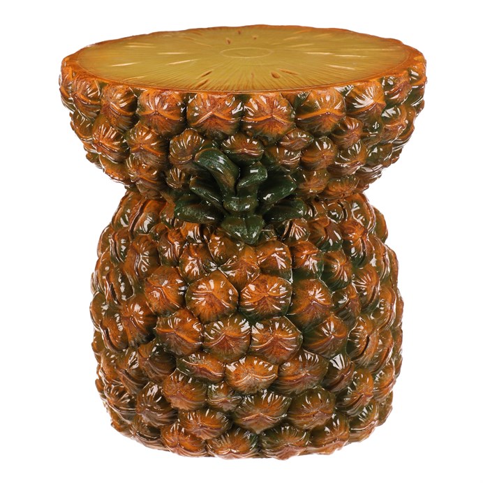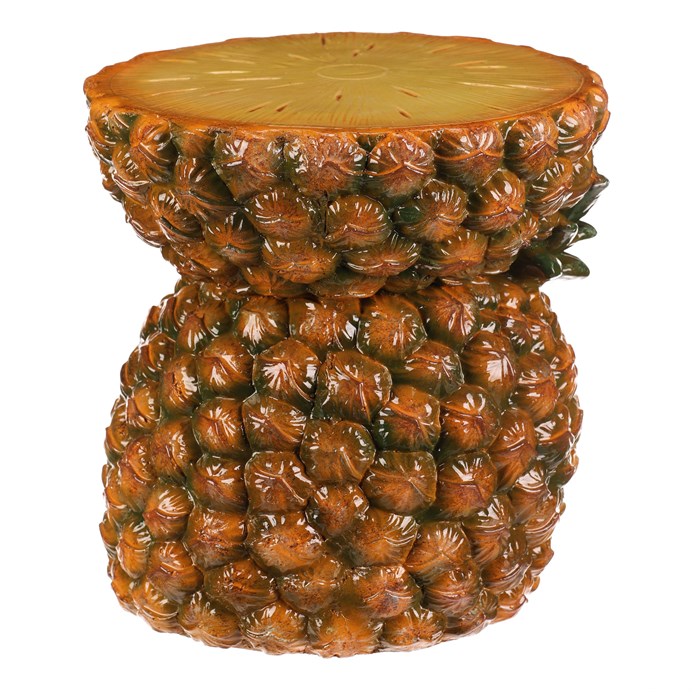 Dotaz na produkt Na splátky ještě dnesTaburet ve tvaru ananasu je vyroben z magnesia s povrchovou úpravou v žluto-oranžových odstínech, která věrně imituje strukturu a barvu skutečného ovoce. Jeho detailně propracovaná silueta s výraznými listy vytváří dekorativní prvek vhodný do interiérů s tropickým nebo hravým stylem. Kompaktní rozměry a stabilní základna umožňují využití jako sedátko nebo odkládací plocha. Povrch se snadno udržuje a díky pevnému základu je zajištěna dlouhá životnost produktu. Taburet je ideální pro oživení prostoru a dodání originálního akcentu.