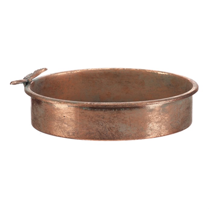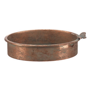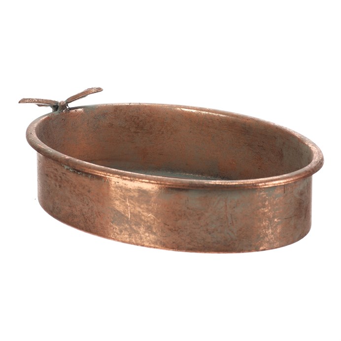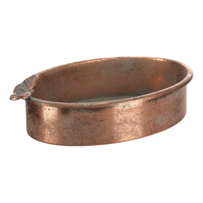 Dotaz na produktOválný kovový tác v měděném odstínu zaujme svým jemně patinovaným povrchem, který dodává vintage charakter. Na jednom okraji je zdobený detailním motivem motýla, který působí jako elegantní dekorativní prvek. Tác je určen pro aranžování nejrůznějších ozdob a květina, přičemž jeho pevný základ zajišťuje stabilitu a snadnou údržbu.