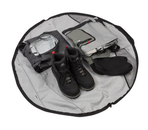 Dotaz na produktTaco bag z voděodolného materiálu pro pohodlný přenos broďáků, bot a další výbavy. Lze použít i jako podložku při převlékání.